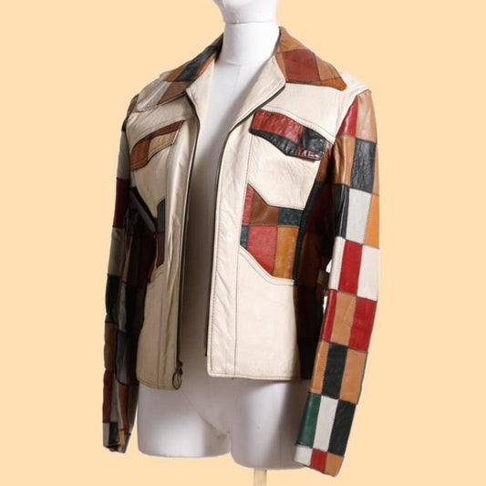 VINTAGE Multicolor Patchwork Genuine Leather Jacket