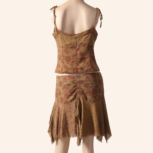 PLEIN SUD JEANS Vintage Brown and Red Floral Print Mini Skirt Set