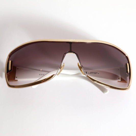 GUCCI Vintage Sunglasses GG 1822/S Shield Single Lens Pink Lenses Gold and White