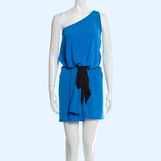 JAY GODFREY Blue One-Shoulder Mini Dress With Black Belt