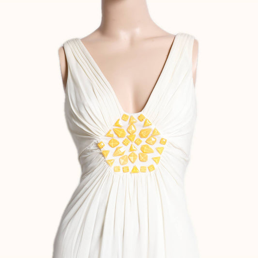 BCBGMAXAZRIA White with Yellow Embellishments Sleeveless Dress
