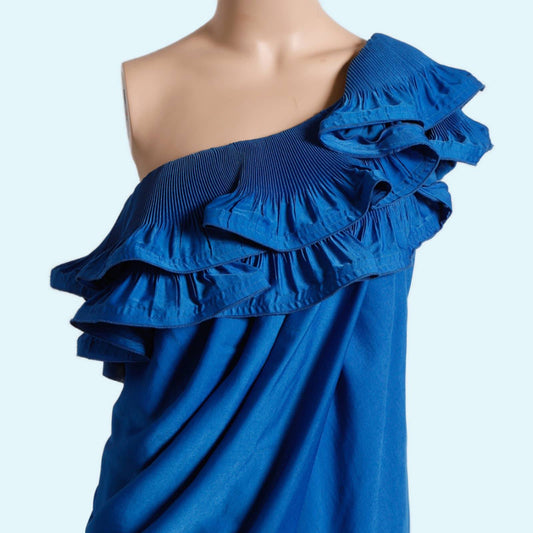 BCBGMAXAZRIA Blue One Shoulder Ruffled Mini Dress
