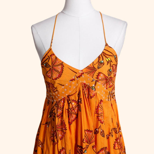 IDEOLOGY Orange Floral Sequined Spaghetti Strap Dress
