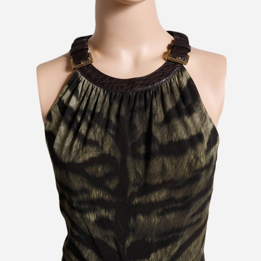 MICHAEL KORS Green and Black Tiger Print Sleeveless Dress