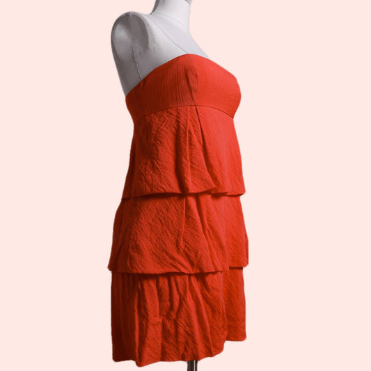BCBGMAXAZRIA Coral Red Strapless Ruffled Mini Dress