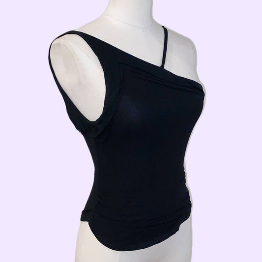 JOSEPH Black One Shoulder Asymmetrical Knit Top