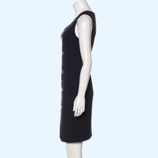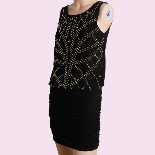 CARMEN MARC VALVO Black and Gold Embellished Sleeveless Tank Dress
