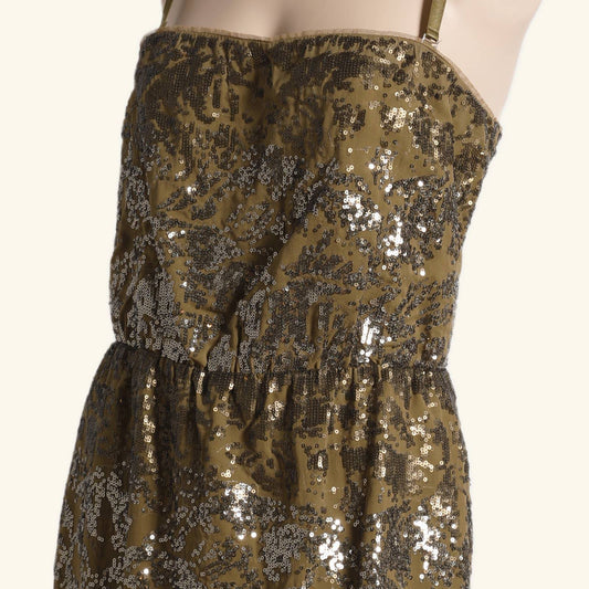 BCBGMAXAZRIA Gold Metallic Sequin Sleeveless Dress