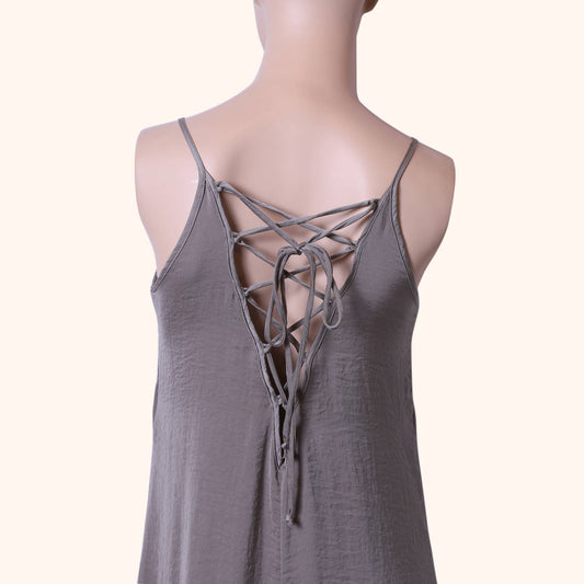 TED BAKER Brown Spaghetti Strap Dress with Gold Embellishments