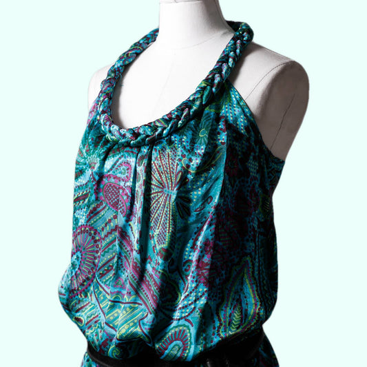 CALYPSO Turquoise Sleeveless Silk Mini Dress