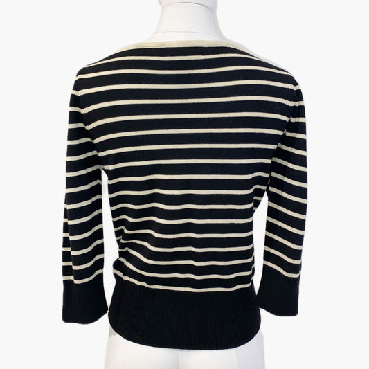 BANANA REPUBLIC Vintage Black and Beige Striped Merino Wool Sweater