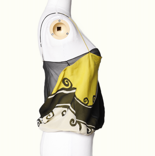 DIANE VON FURSTENBERG Yellow, White and Black Sleeveless Patterned Silk Top