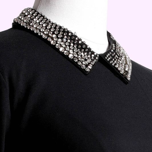 FRENCH CONNECTION Black Long Sleeve Dress with Crystal Collar