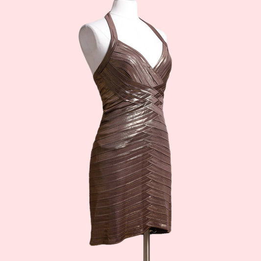 BCBGMAXAZRIA Brown Shimmery Halter Dress