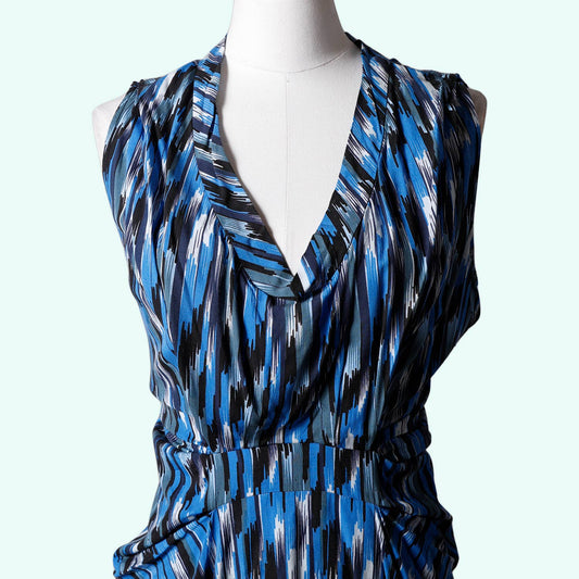 THAKOON Blue, Black and White Abstract Printed Sleeveless Dress