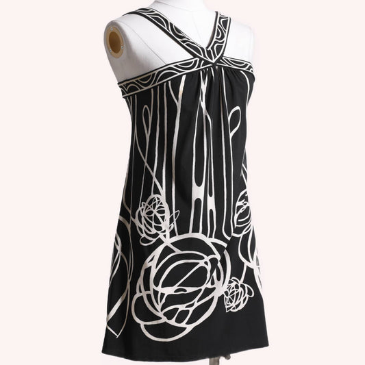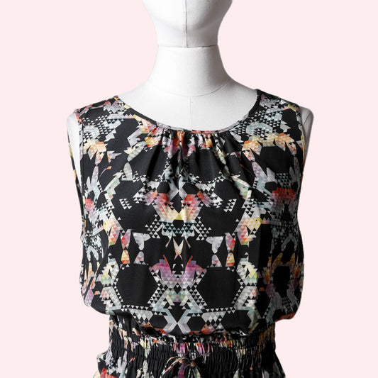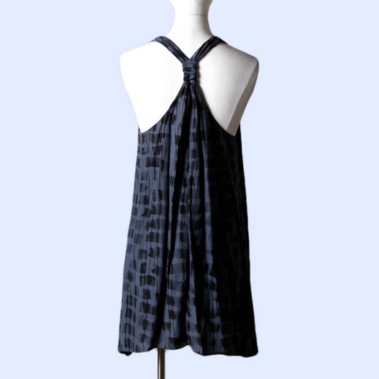 ALICE + OLIVIA Indigo and Black Printed Silk Sleeveless Tank Dress