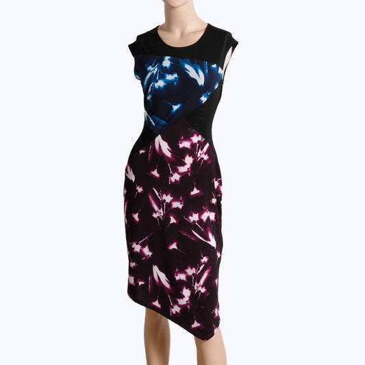 BCBGMAXAZRIA Multicolor Asymmetrical Sleeveless Midi Dress