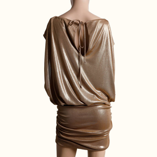 BCBGMAXAZRIA Metallic Gold Short Sleeved Mini Dress