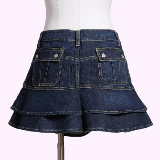 BCBGMAXAZRIA Dark Denim Ruffled Mini Skirt