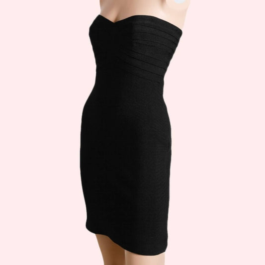 PINK SODA Black with Metallic Mesh Strapless Silk Top