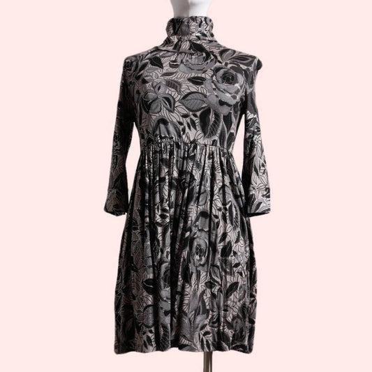 EVENING COLLECTION Black and Grey Metallic Turtleneck Dress