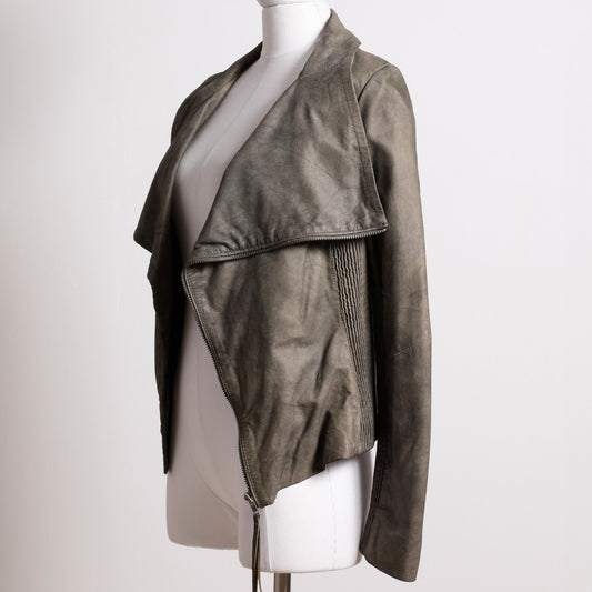 MUUBAA Distressed Tan Gray Leather Jacket