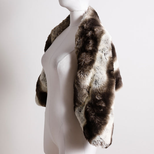 VINTAGE Brown and Black with Black Satin Ribbon Tie Front Faux Fur Cape