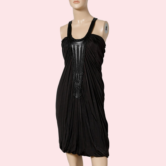 YIGAL AZROUËL Black Grey Knee-Length Dress with Leather Embellished Front