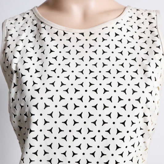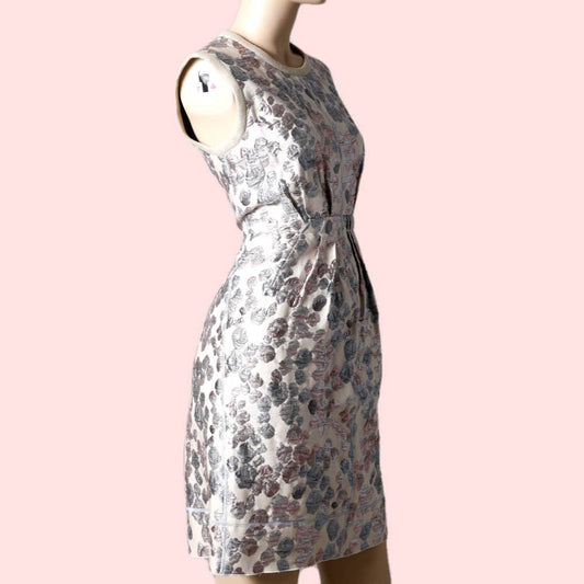 MARC JACOBS Beige with Pink and Silver Metallic Prints Sleeveless Dress