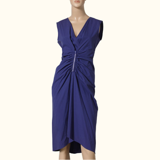 REED KRAKOFF Blue Purple Ruched V-Neck Midi Dress w/ Tags