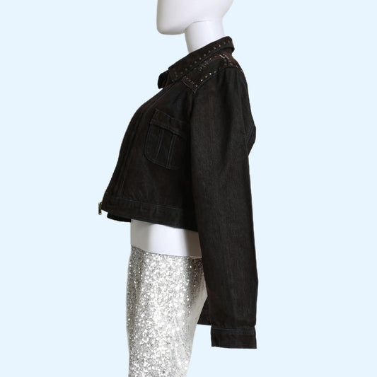 GUESS USA Cropped Denim Embellished Jean Jacket w/ Tags