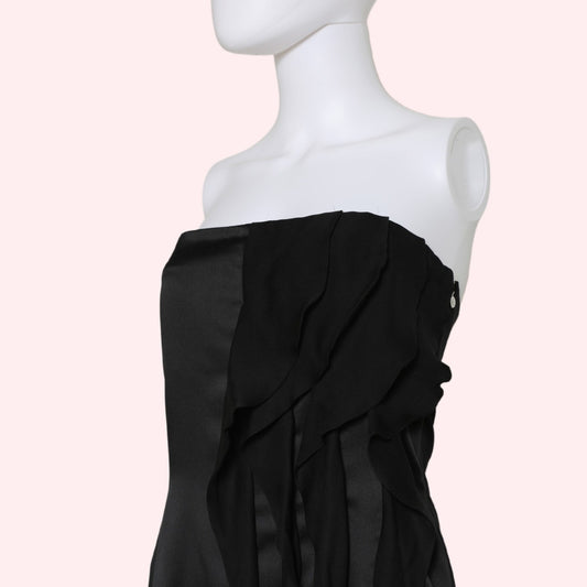 ROBERTO CAVALLI / JUST CAVALLI Black Strapless Silk Dress With Ruffles