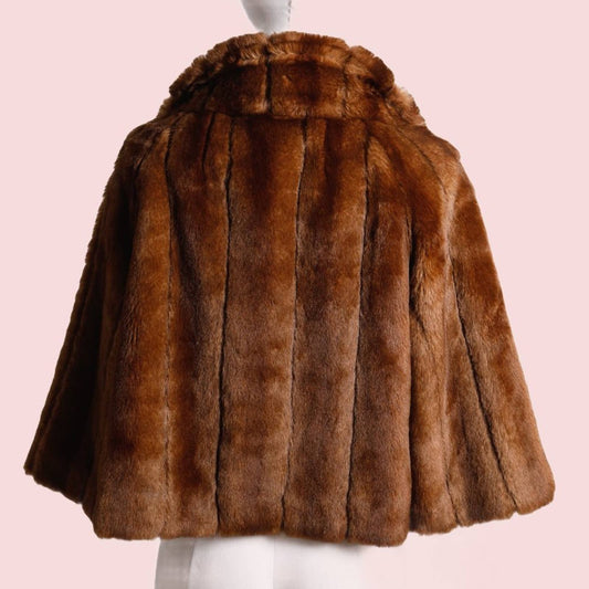 VINTAGE Brown Open Front Faux Fur Cape