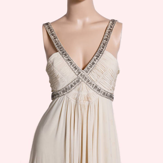 BCBGMAXAZRIA Embellished Cream Evening Gown / Maxi Dress