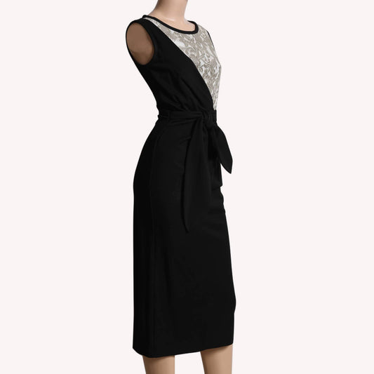 DIANE VON FURSTENBERG Black with Lace Accented Sleeveless Midi Dress