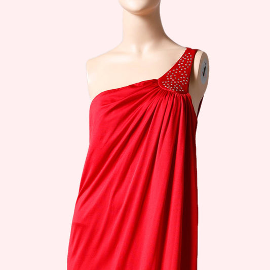 JACK HARTLEY Vintage Red One Shoulder Maxi Dress with Crystal Embellishments