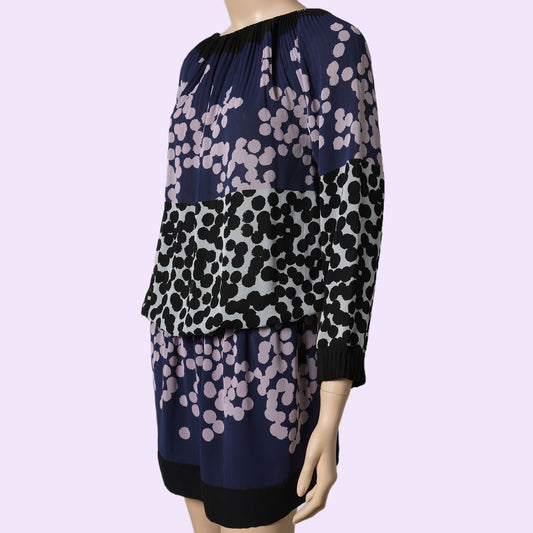 DIANE VON FURSTENBERG Multicolor Abstract Print Pleated Blouson Mini Dress