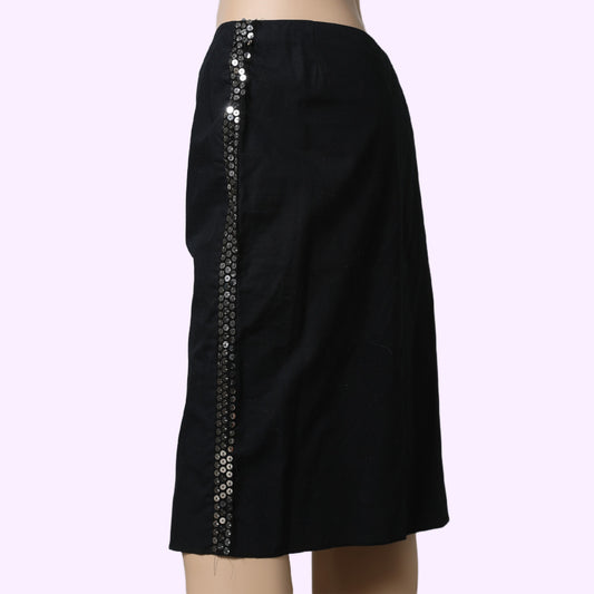 JEAN COLONNA Black And Silver Sequin Vintage Pencil Skirt