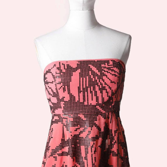 TIBI Pink with Black Sequins Strapless Silk Mini Dress