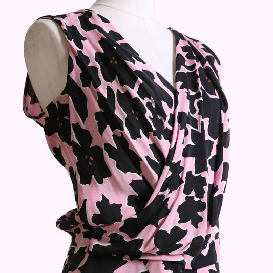 DIANE VON FURSTENBERG Pink and Black Printed Sleeveless Silk Dress