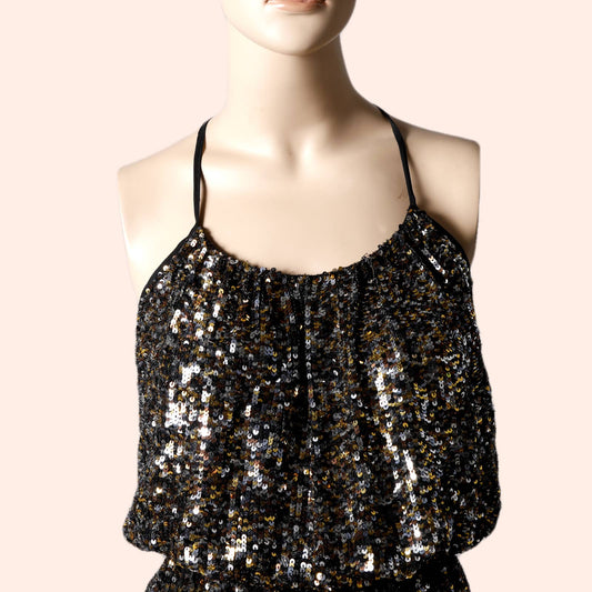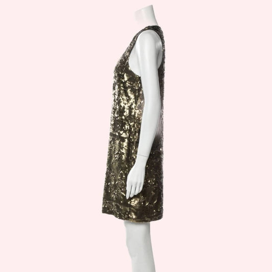 ROBERT RODRIGUEZ Gold Sequin Scoop Neck Sleeveless Tank Dress