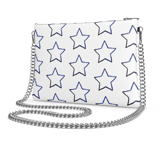 UNTITLED BOUTIQUE White and Blue Leather Star Crossbody Bag with Silver Chain - Limited Edition
