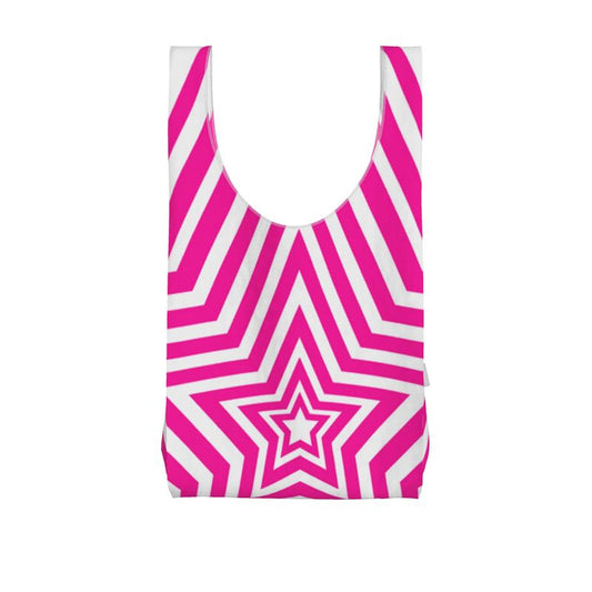 UNTITLED BOUTIQUE Pink and White Parachute Ripstop Stars Shopping Bag