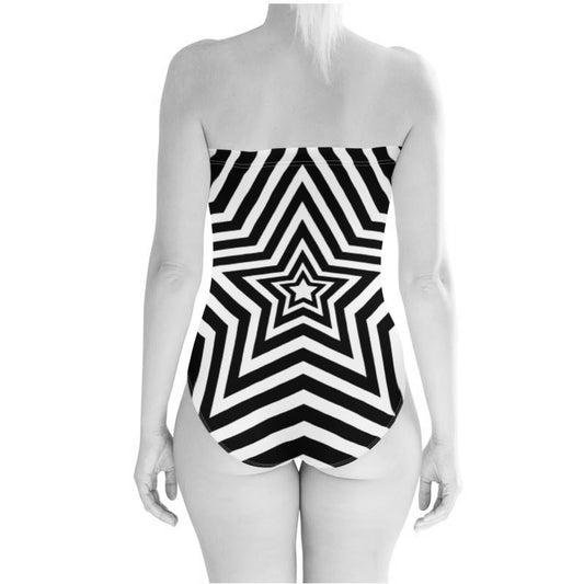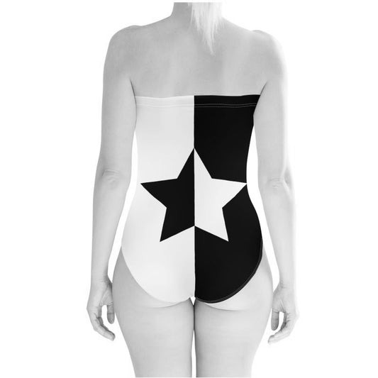 UNTITLED BOUTIQUE Black and White Yin-Yang Lycra Stars Strapless Swimsuit - Limited Edition