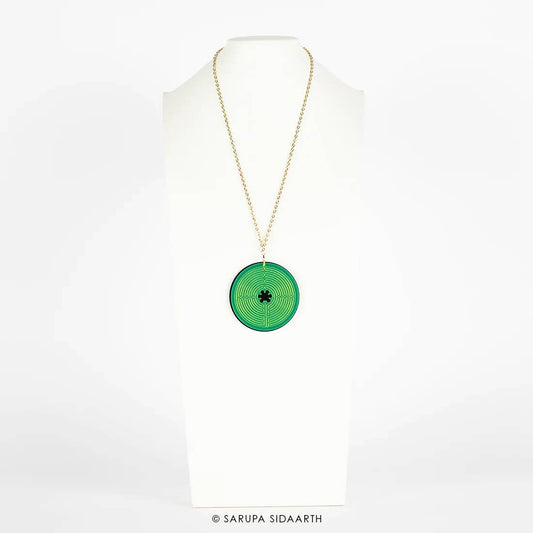 SARUPA SIDAARTH Green Fluorescent and Black Acrylic Labyrinth Necklace