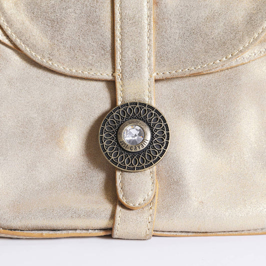 JUST CAVALLI Gold Metallic Leather Hand Bag with Chain Strap