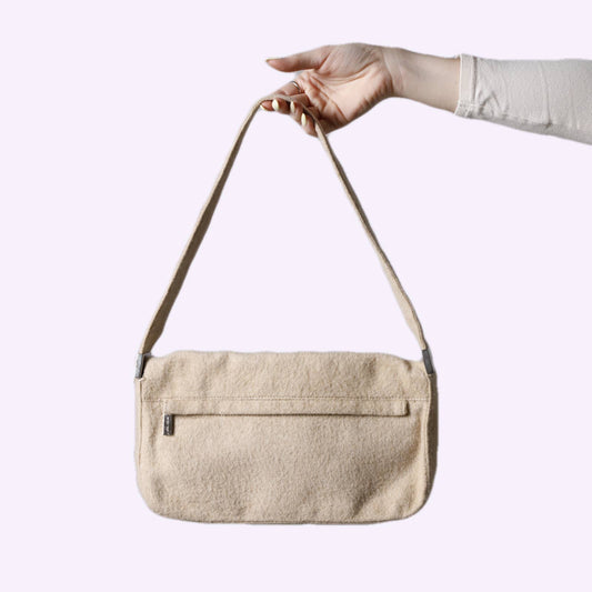 SERGIO ROSSI Beige Wool with Multicolor Embroidery and Beads Shoulder Bag