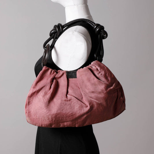 SEQUOIA PARIS Vintage Pink Silk and Leather Shoulder Bag