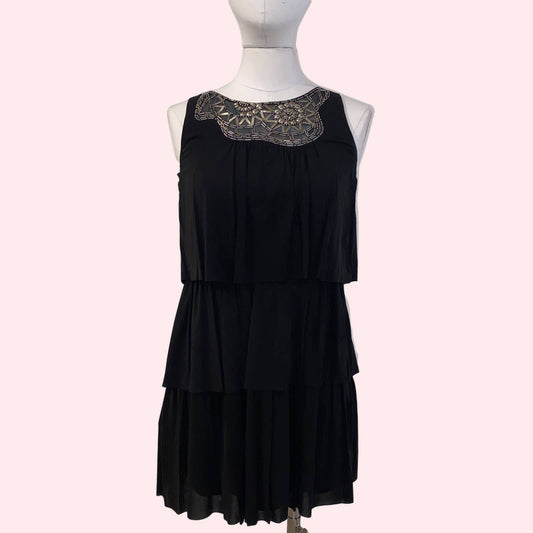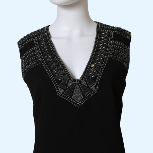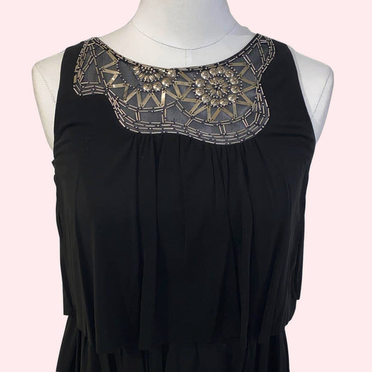 BCBGMAXAZRIA Black Trapeze Dress With Silver Embellishments