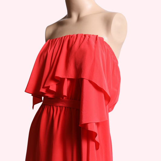HAUTE HIPPIE Coral Red Strapless Mini Dress